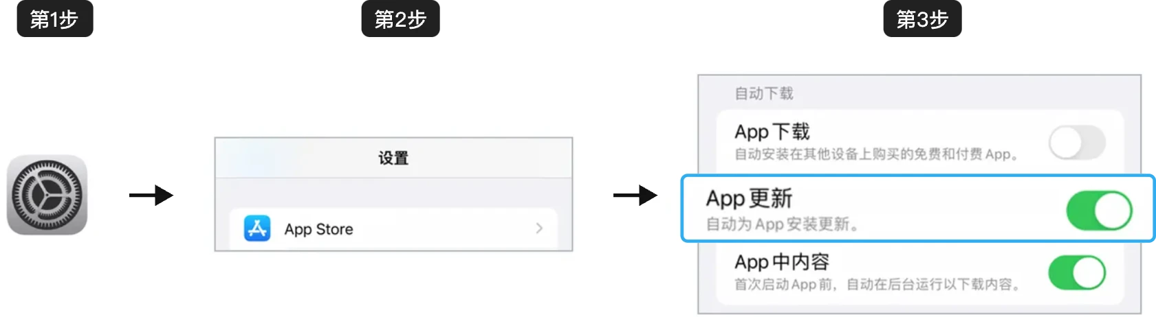 蘋果手機設置頁,點擊 【設置】-【APP Store】-打開【自動更新】 。