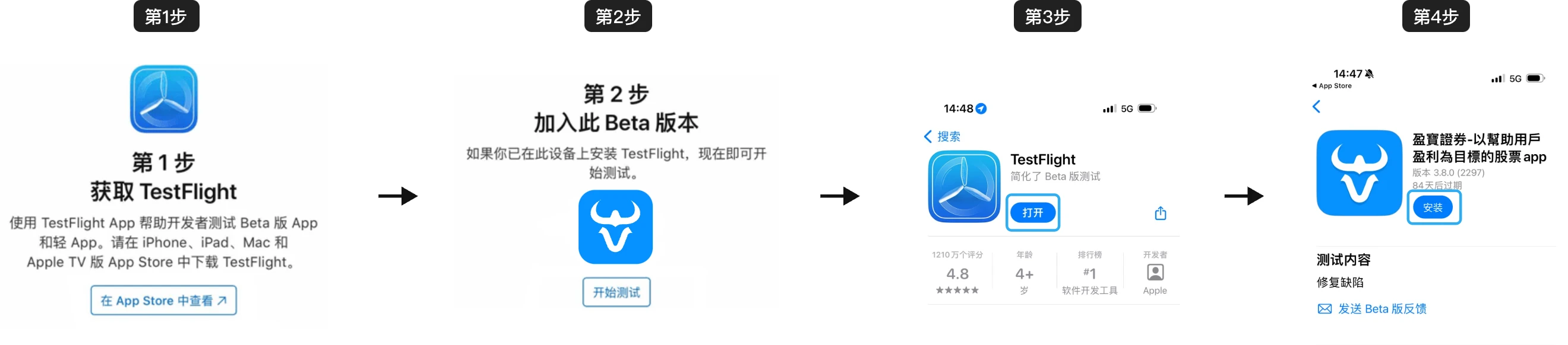 點擊 第2步 "中盈寶證券圖示下方的【開始測試】,跳轉後點擊【安裝】盈寶證券APP,安裝後即可正常使用。